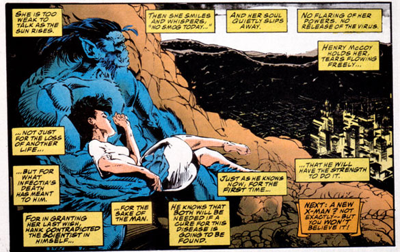 Panel from X-Men #27 (December 1993), script by Fabian Nicieza, pencils by Richard Bennett, inks by Bob Wiacek and Scott Hanna, colors by Joe Rosas, letters by Bill Oakley