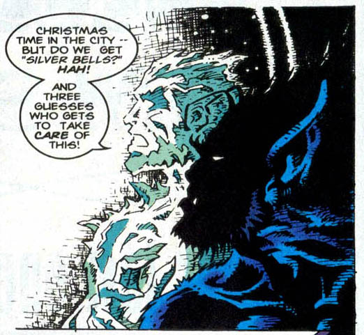 Panel from Marvel Holiday Special 1994 one-shot (1994), script by Kurt Busiek, pencils by James Fry, inks by Neil Vokes, colors by Steve Mattson, letters by Richard Starkings