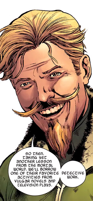 Panel from Warriors Three #1 (January 2011), script by Bill Willingham, pencils by Neil Edwards, inks by Scott Hanna, colors by Frank Martin, letters by Clayton Cowles