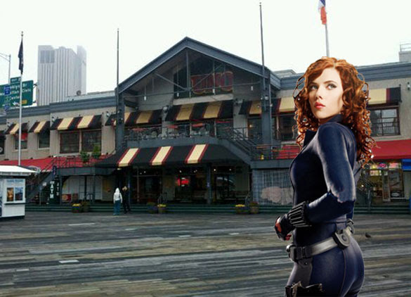 *Actual unretouched photo of Black Widow at South Street Seaport in front of the Pizzeria Uno::