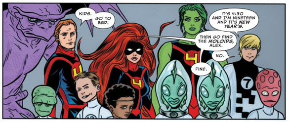 from FF (2013 series) #3 (Marvel, March 2013), script by Matt Fraction, pencils and inks by Michael Allred, colors by Laura Allred, letters by Clayton Cowles